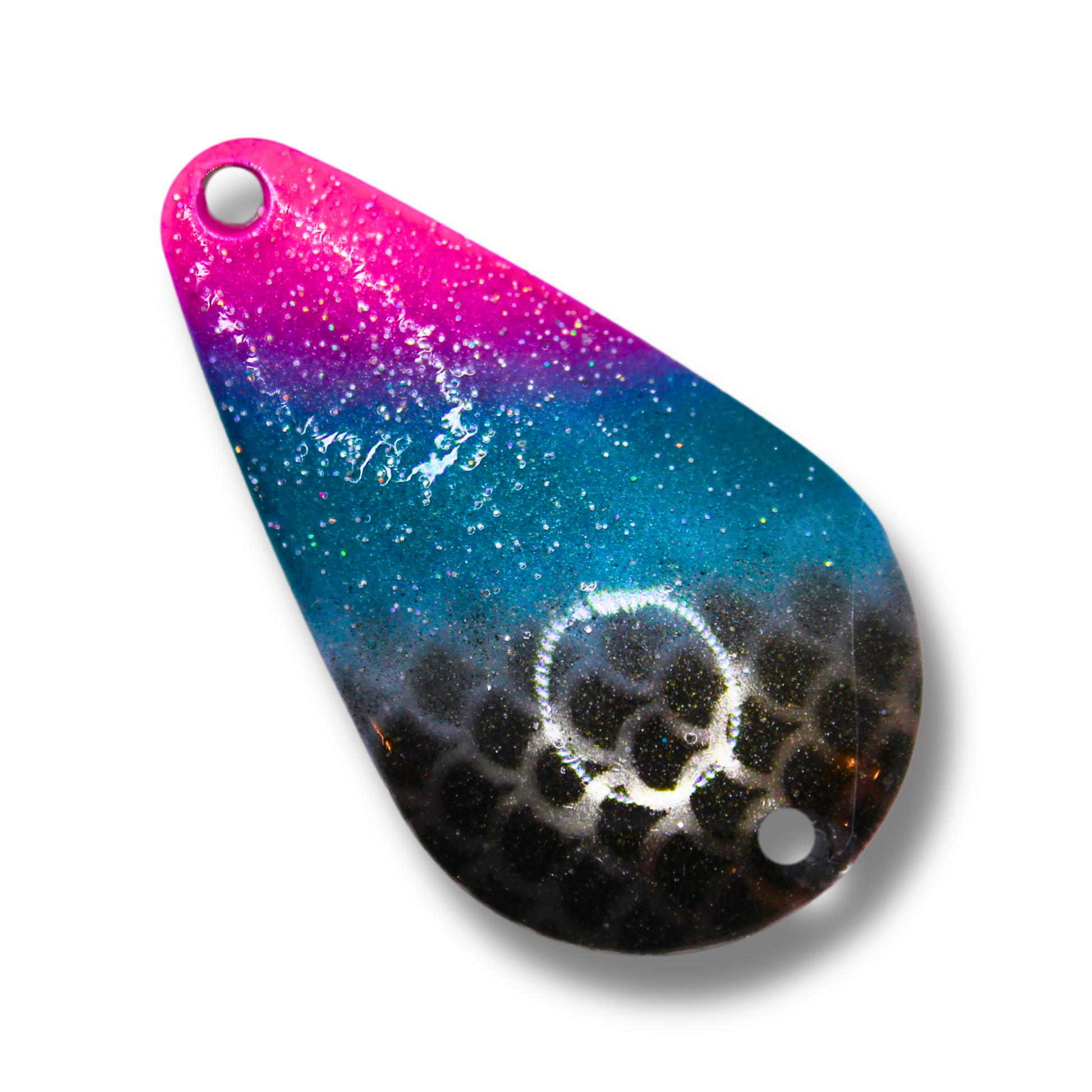 Distinctive tear drop shaped casting spoons in two versatile sizes, featuring a unique, fish attracting wobbling action, durable 2X strength hooks, durable split rings and our "Fish On" topcoat.