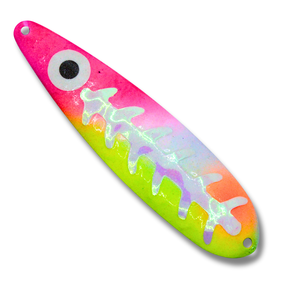 These high quality, lightweight trolling spoons are designed to elevate your fishing experience. They have an irresistible fluttering action that sets them apart. At TNT Fishing Lures we use only quality American made blanks, solid stainless heavy duty split rings, 2x strength treble hooks, high quality paints and a UV protective durable top coat.