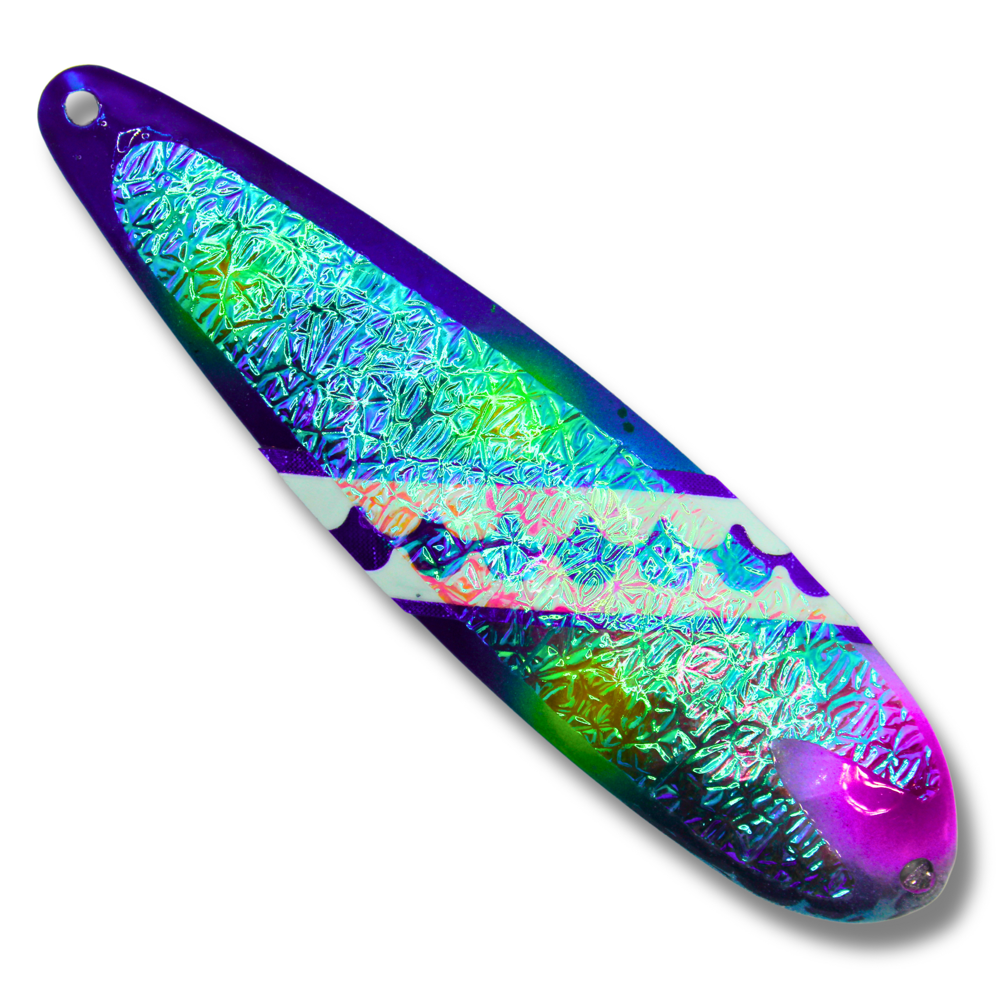 These high quality trolling spoons are designed to elevate your fishing experience. They have an irresistible fluttering action that sets them apart. At TNT Fishing Lures we use only quality American made blanks, solid stainless heavy duty split rings, 2x strength treble hooks, high quality paints and a UV protective durable top coat.