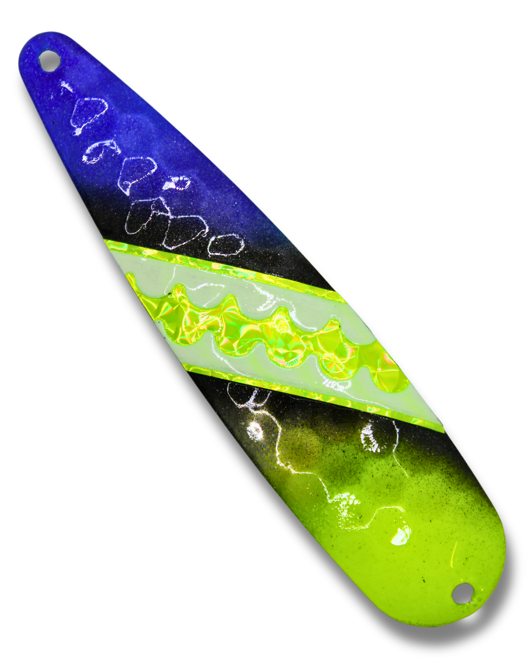 These high quality trolling spoons are designed to elevate your fishing experience. They have an irresistible fluttering action that sets them apart. At TNT Fishing Lures we use only quality American made blanks, solid stainless heavy duty split rings, 2x strength treble hooks, high quality paints and a UV protective epoxy topcoat.