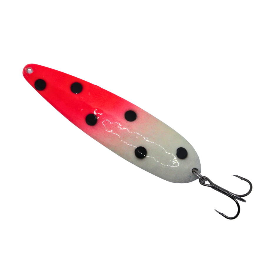 These high quality, lightweight trolling spoons are designed to elevate your fishing experience. They have an irresistible fluttering action that sets them apart. At TNT Fishing Lures we use only quality American made blanks, solid stainless heavy duty split rings, 2x strength Torpedo treble hooks, high quality paints and a UV protective durable top coat.