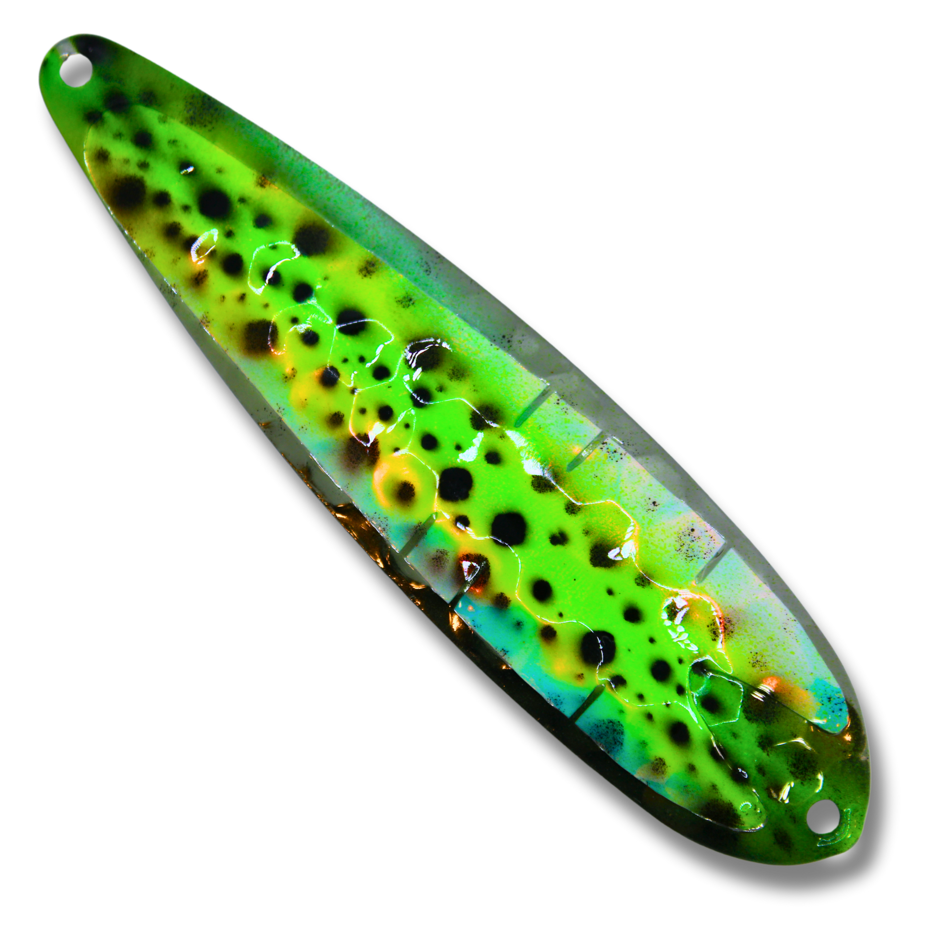 These high quality trolling spoons are designed to elevate your fishing experience. They have an irresistible fluttering action that sets them apart. At TNT Fishing Lures we use only quality American made blanks, solid stainless heavy duty split rings, 2x strength treble hooks, high quality paints and a UV protective durable top coat.