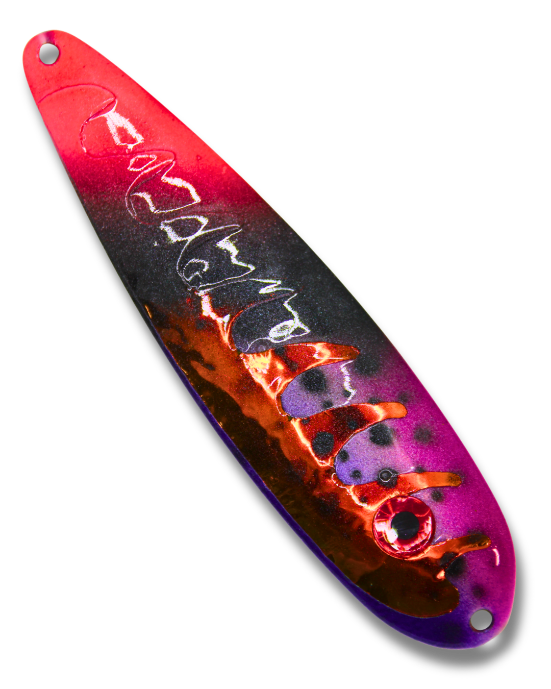 These high quality trolling spoons are designed to elevate your fishing experience. They have an irresistible fluttering action that sets them apart. At TNT Fishing Lures we use only quality American made blanks, solid stainless heavy duty split rings, 2x strength VMC treble hooks, high quality paints and a UV protective durable top coat.