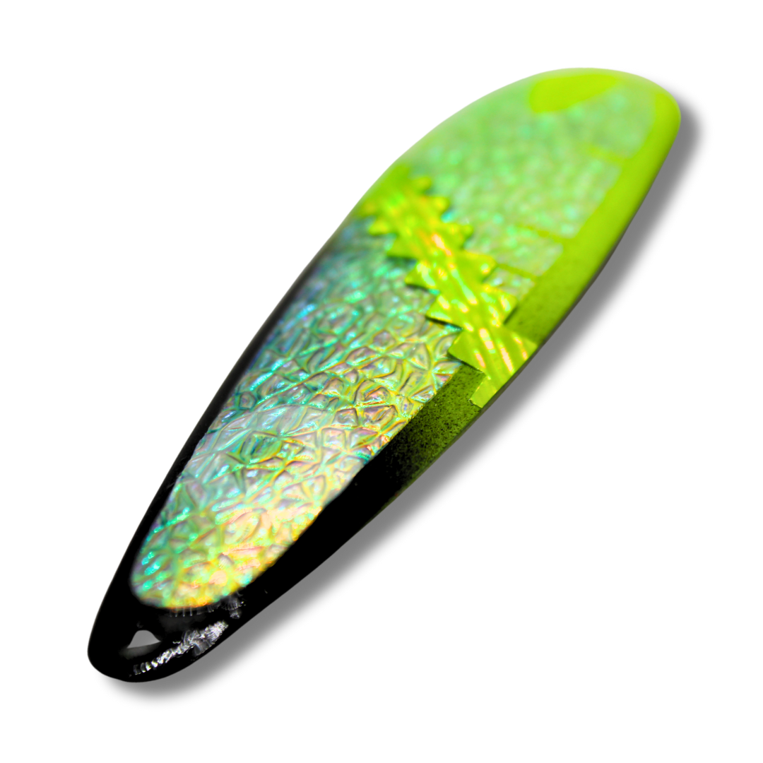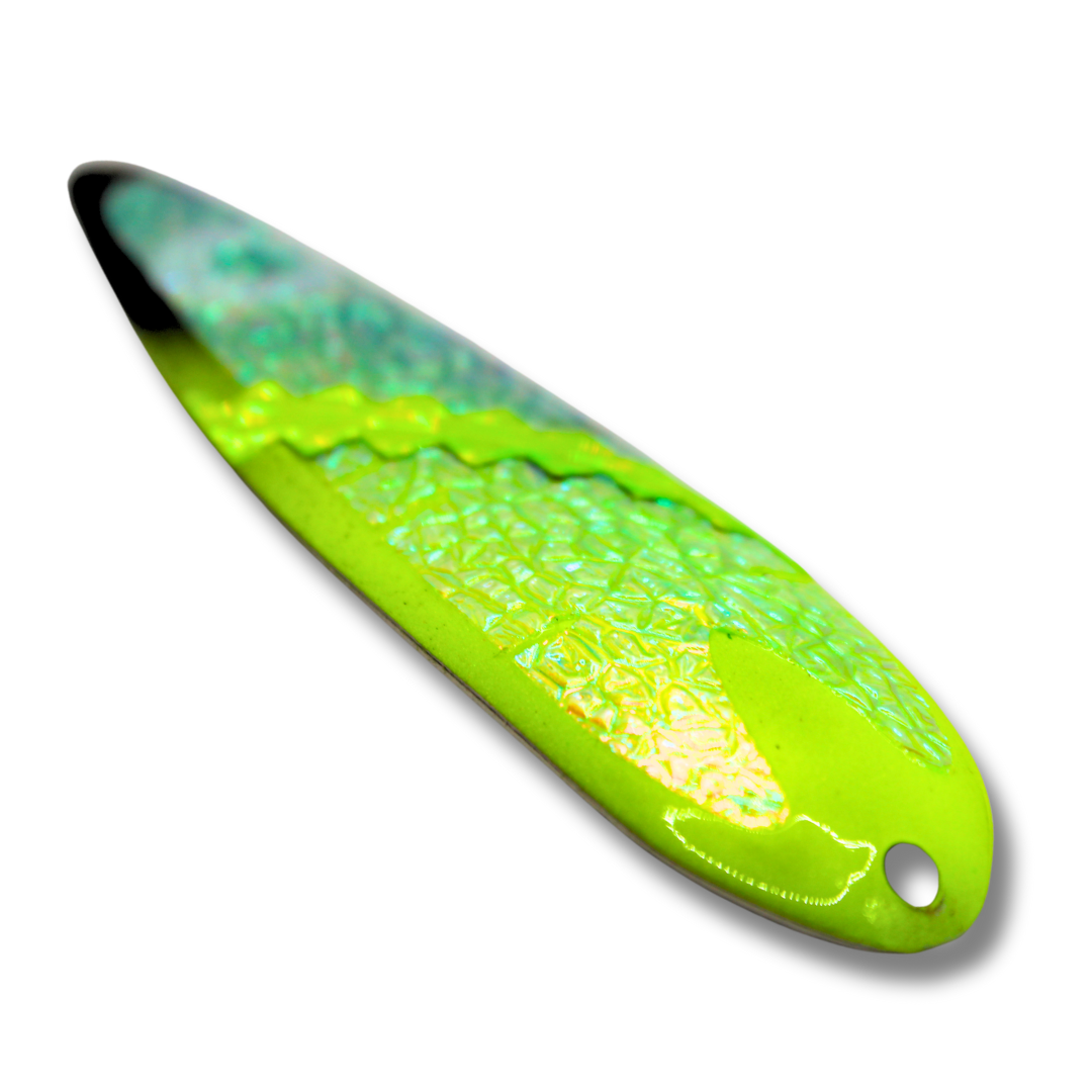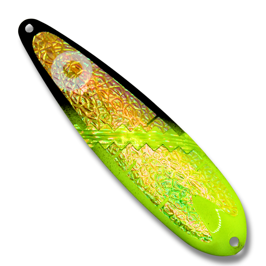 These high quality trolling spoons are designed to elevate your fishing experience. They have an irresistible fluttering action that sets them apart. At TNT Fishing Lures we use only quality American made blanks, solid stainless heavy duty split rings, 2x strength treble hooks, high quality paints and a UV protective durable top coat.