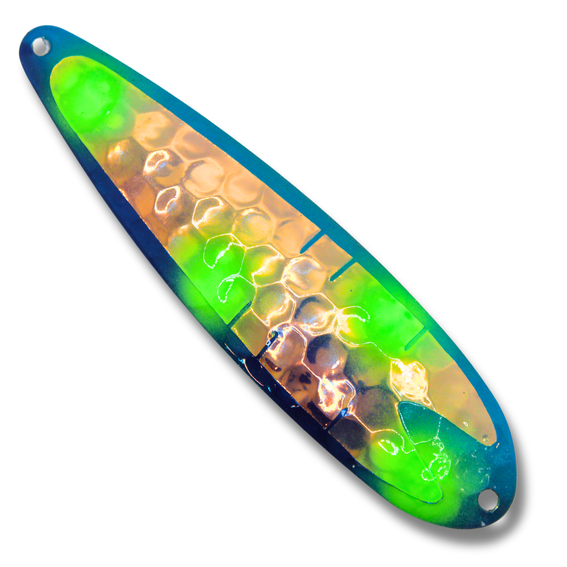 These high quality trolling spoons are designed to elevate your fishing experience. They have an irresistible fluttering action that sets them apart. At TNT Fishing Lures we use only quality American made blanks, solid stainless heavy duty split rings, 2x strength treble hooks, high quality paints and a UV protective durable top coat.