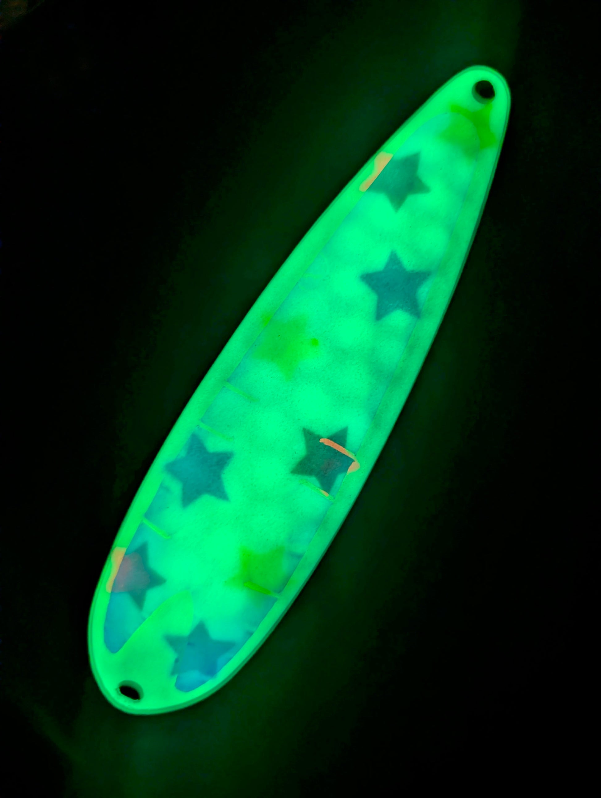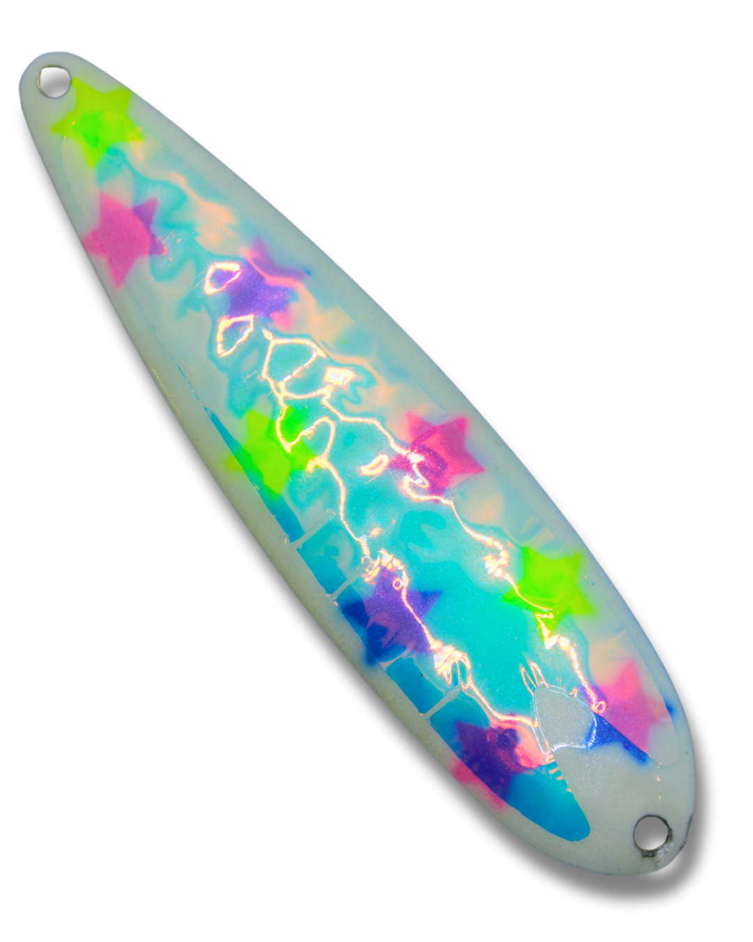 These high quality trolling spoons are designed to elevate your fishing experience. They have an irresistible fluttering action that sets them apart. At TNT Fishing Lures we use only quality American made blanks, solid stainless heavy duty split rings, 2x strength VMC treble hooks, high quality paints and a UV protective durable top coat.