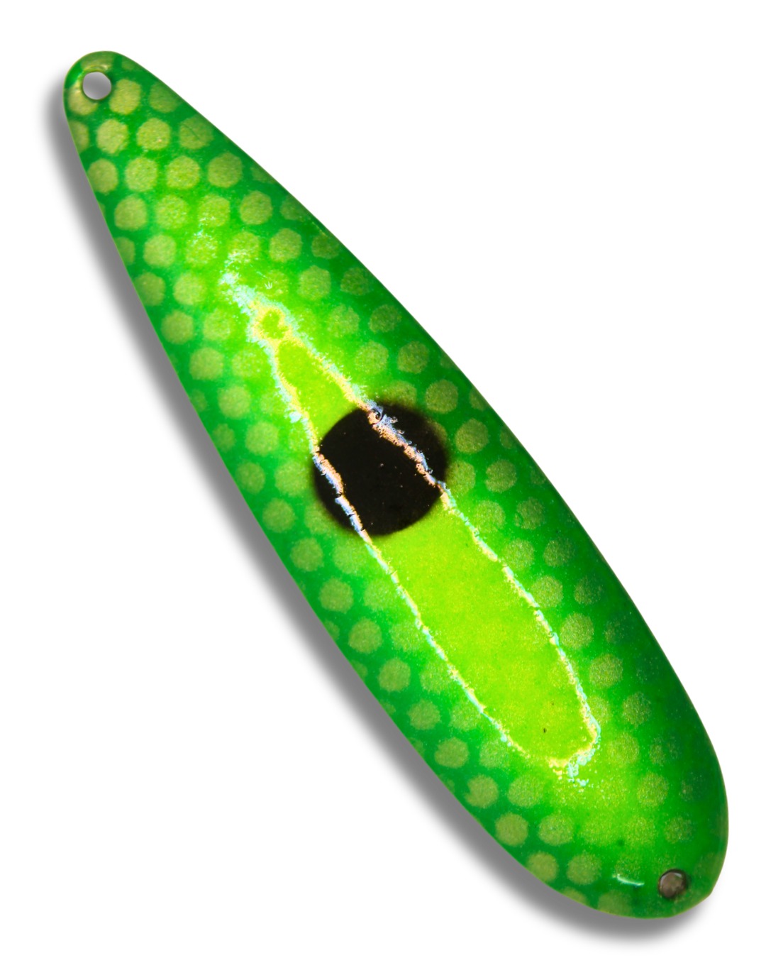 These high quality trolling spoons are designed to elevate your fishing experience. They have an irresistible fluttering action that sets them apart. At TNT Fishing Lures we use only quality American made blanks, solid stainless heavy duty split rings, 2x strength VMC treble hooks, high quality paints and a UV protective durable top coat.