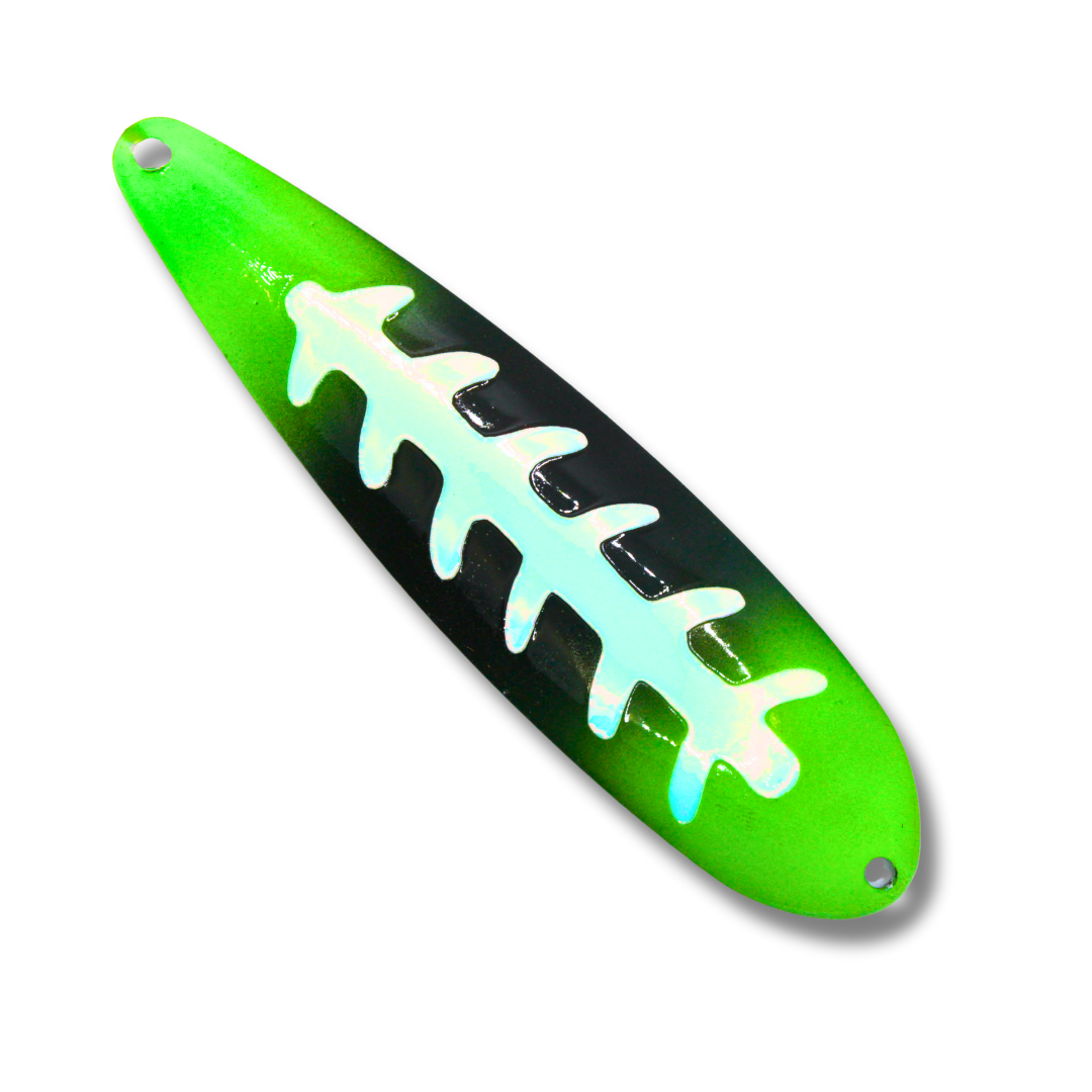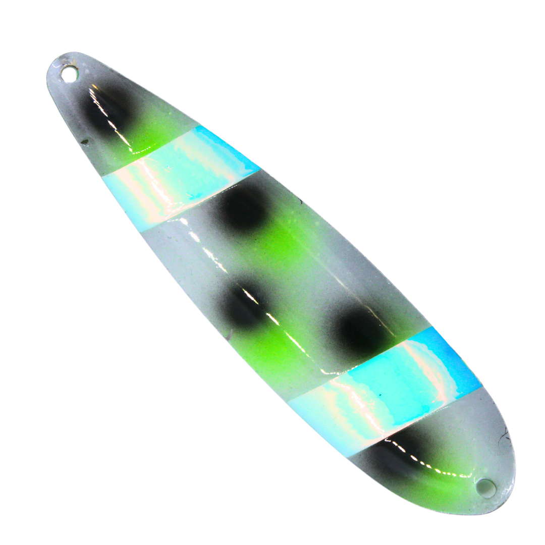 These high quality, lightweight trolling spoons are designed to elevate your fishing experience. They have an irresistible fluttering action that sets them apart. At TNT Fishing Lures we use only quality American made blanks, solid stainless heavy duty split rings, 2x strength Torpedo treble hooks, high quality paints and a UV protective durable top coat.
