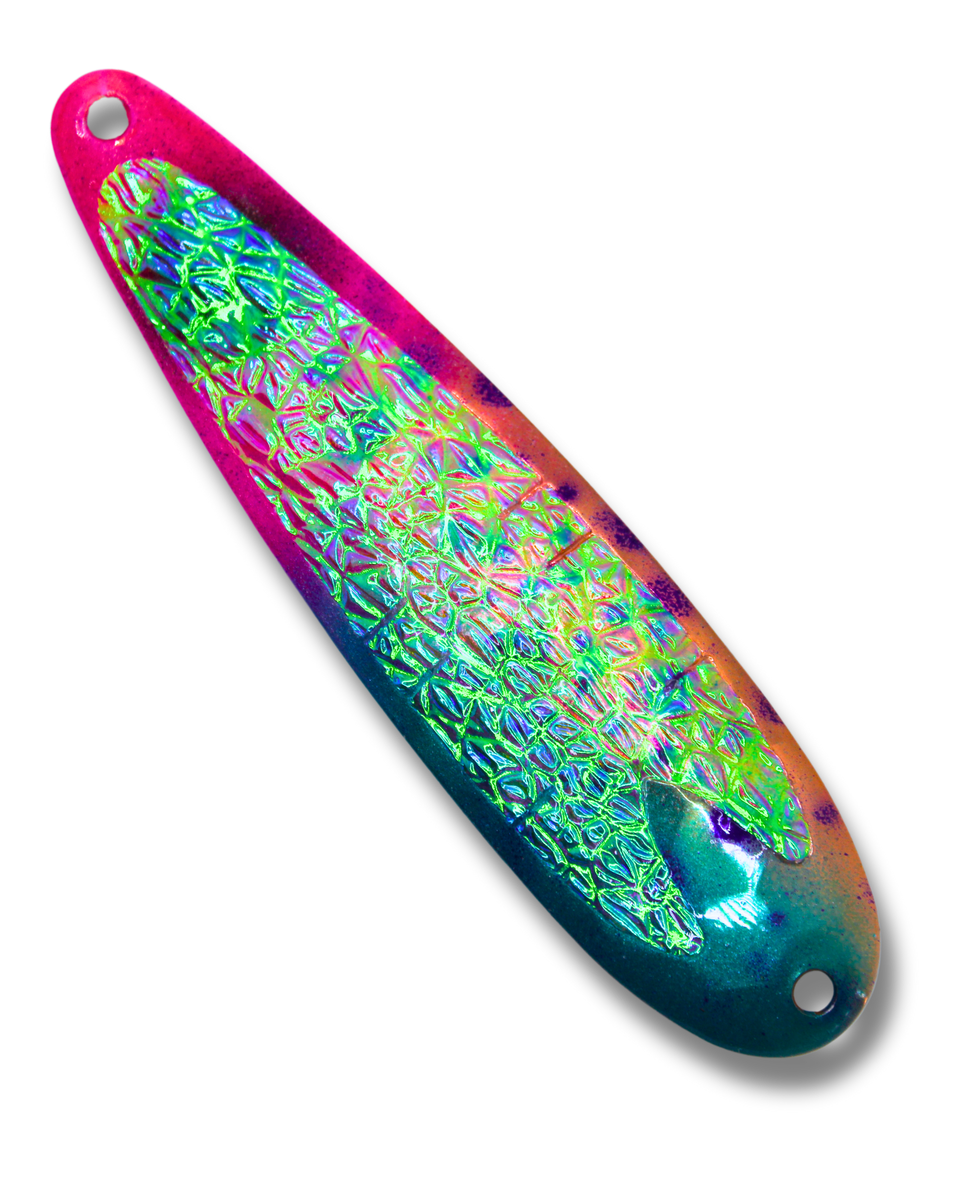 These high quality trolling spoons are designed to elevate your fishing experience. They have an irresistible fluttering action that sets them apart. At TNT Fishing Lures we use only quality American made blanks, solid stainless heavy duty split rings, 2x strength treble hooks, high quality paints and a UV protective durable top coat.