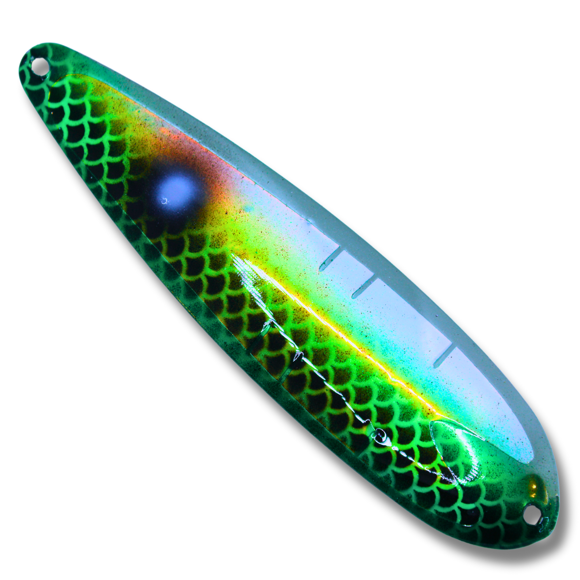 These high quality trolling spoons are designed to elevate your fishing experience. They have an irresistible fluttering action that sets them apart. At TNT Fishing Lures we use only quality American made blanks, solid stainless heavy duty split rings, 2x strength treble hooks, high quality paints and a UV protective durable top coat.
